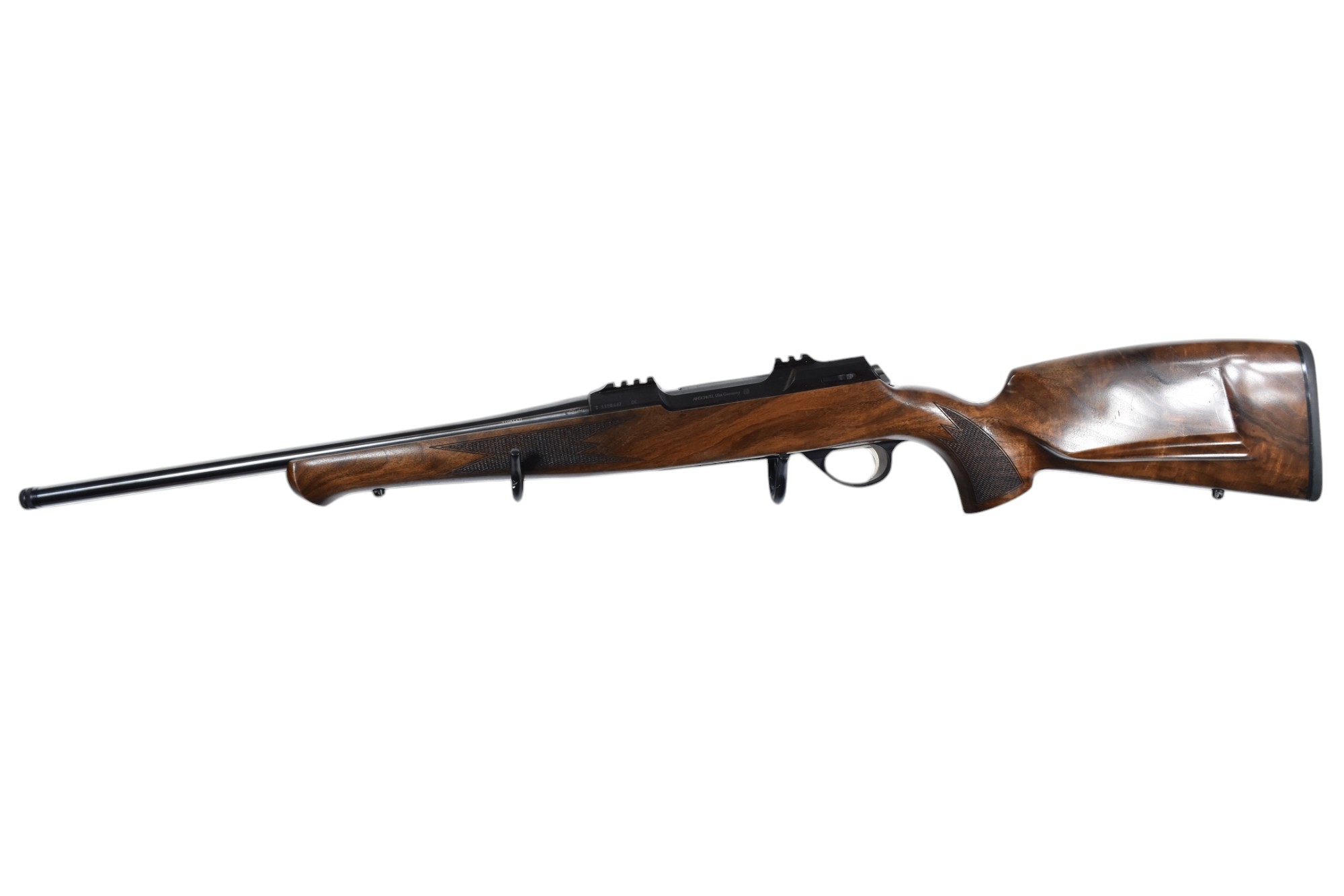 Die Anschütz 1782 mit deutschem Schaft im Kaliber 8x57JS besticht durch ihre präzise Verarbeitung und eine edle Luxus-Holzklasse. Diese Ausstellungswaffe hat eine Schussbelastung von nur 40 Schuss und befindet sich in einem guten Zustand. Allerdings sind auf der linken Seite des Schafts, in Höhe des Magazins, deutliche Schrammen sichtbar, ebenso wie an der Holzbacke. Diese optischen Mängel beeinträchtigen jedoch nicht die Funktionalität der Waffe. Sie wird zu einem attraktiven Preis und mit voller Garantie angeboten.