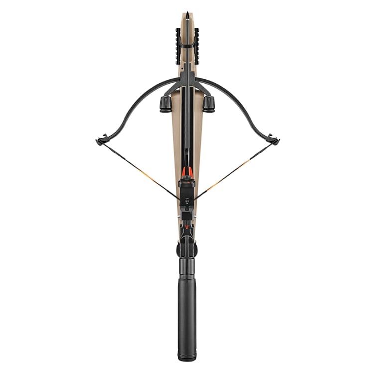 Die Compoundarmbrust ist aus robustem Kunststoff gefertigt und verfügt über Wurfarme aus langlebigem Glasfasergewebe. Der ergonomische und strukturierte Griff sorgt für einen sicheren Halt und der patentierte Abzug mit Sicherheitsmechanismus gewährleistet eine präzise Schussabgabe.