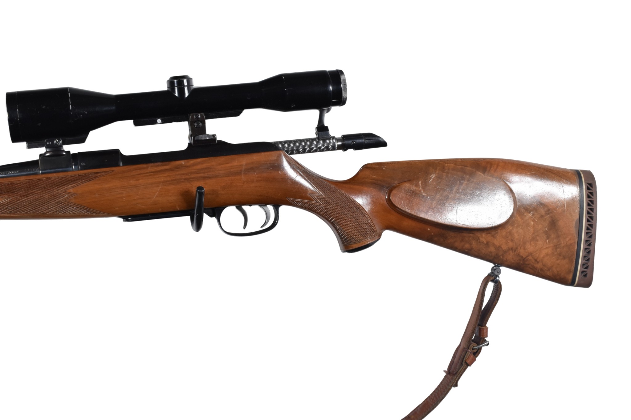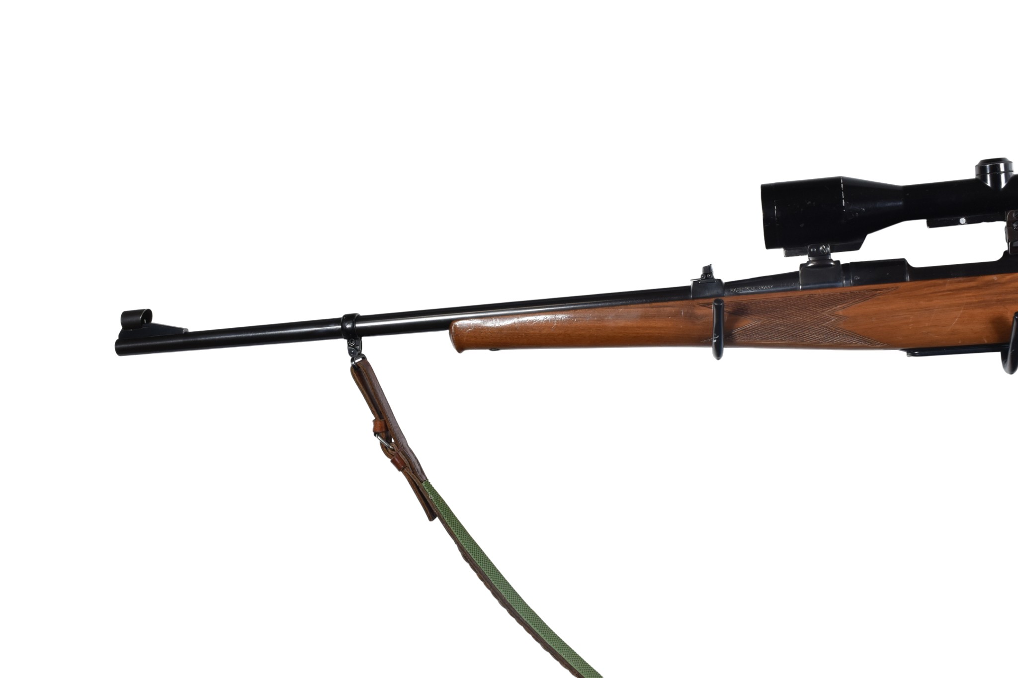 Diese Repetierbüchse im Kaliber .243 Win ist mit einem Hensoldt Wetzlar Diatal 6×24 Zielfernrohr mit Absehen 1 ausgestattet. Sie hat eine Gesamtlänge von 111 cm, eine Lauflänge von 62 cm und eine Schaftlänge von 37,5 cm. Der Zustand wird mit z3 angegeben, was auf deutliche Gebrauchsspuren hinweist, darunter stärkere Dellen oder Kratzer an der Brünierung. Diese Einschätzung dient als allgemeine Orientierung zusätzliche Abnutzungen oder Abweichungen können vorhanden sein. Die Büchse verfügt über einen deutschen Stecher für feinfühliges Abziehen, eine Gummischaftkappe sowie einen montierten Riemen.