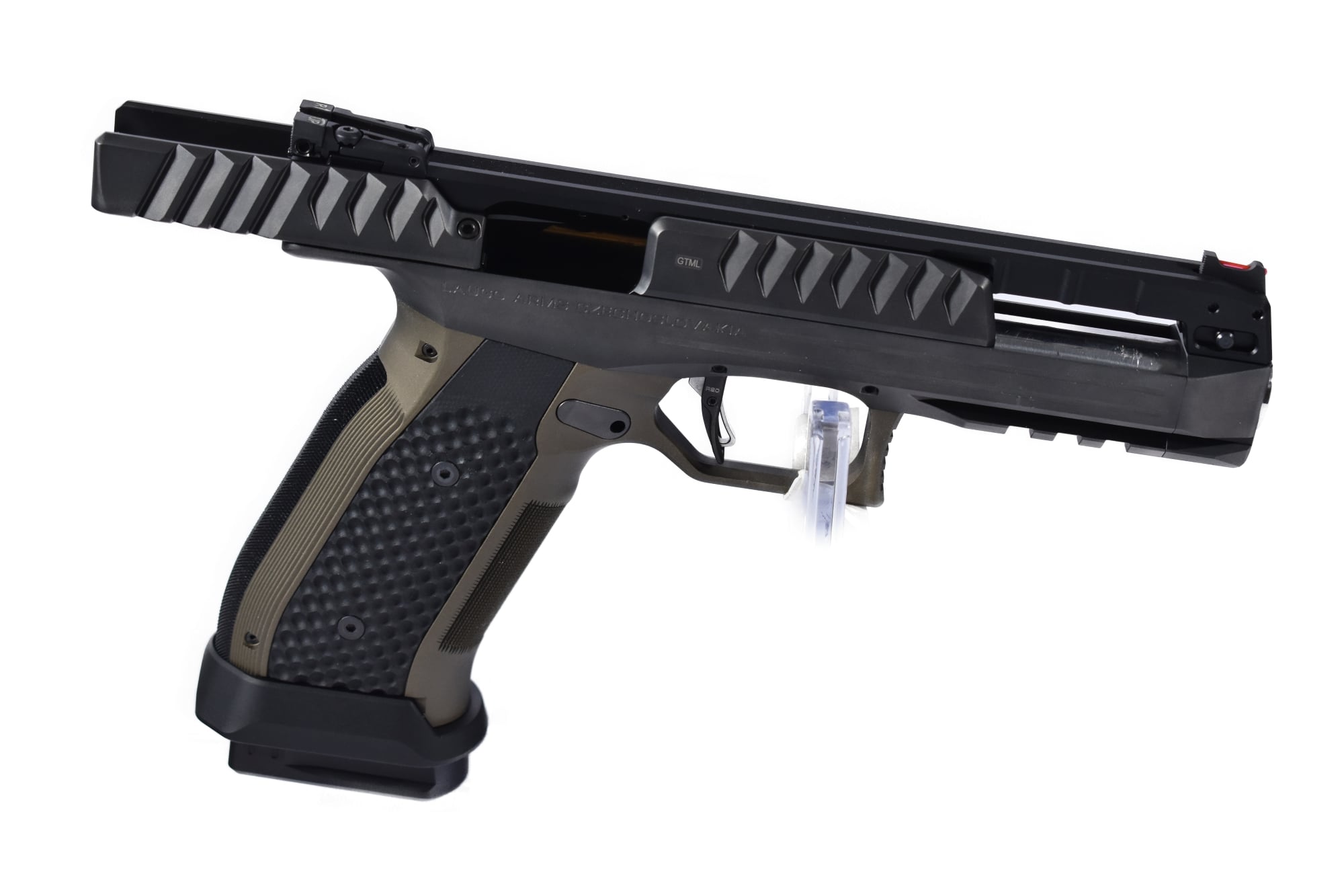 Die Laugo Arms Alien ist eine revolutionäre halbautomatische Pistole, die durch ihre einzigartigen technischen Lösungen neue Maßstäbe setzt. Im Gegensatz zu traditionellen Verriegelungs- oder Auslösemechanismen nutzt die Alien eine vollkommen neue Technologie, die auf Präzision und Fortschritt ausgerichtet ist. Diese Pistole wurde speziell entwickelt, um Schützen eine unvergleichliche Leistung und Genauigkeit zu bieten.