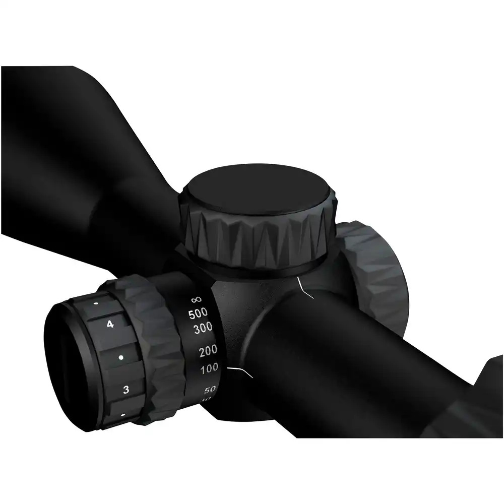 - Abgedeckte Höhen- und Seitenverstellung in 0,5 MOA-Schritten