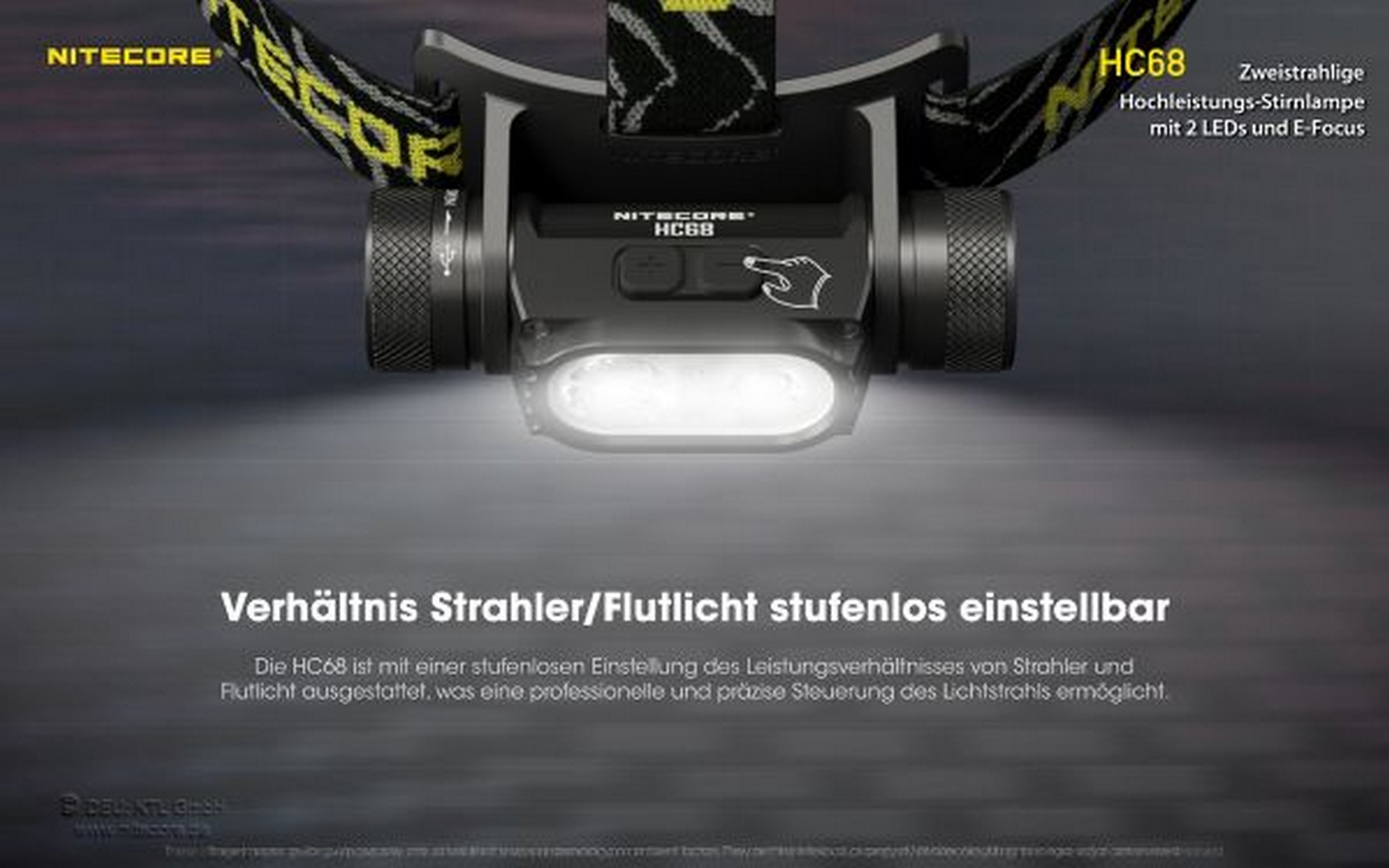 Die Nitecore HC68 ist die perfekte Kopflampe für alle Outdoor-Abenteuer. Mit ihrer maximalen Leistung von 2000 Lumen und der stufenlosen Fokussierung dank E-Focus bist du immer bestens ausgestattet.