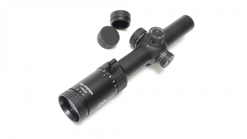 Dieses Zielfernrohr wurde in Zusammenarbeit mit einem renommierten deutschen Optikhersteller entwickelt und erfüllt dank des Produktionsstandortes Japan höchste Qualitätsstandards. Die **Targetverstelltürme mit Schutzkappen**, der **wasserdichte Schutz nach IP68** und der robuste **Aluminiumkörper** machen das OA SHARP LPVO 1-8x24i extrem widerstandsfähig und langlebig. Das Gehäuse ist eloxiert und in einem matten Schwarz gehalten.