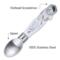 ieses 3-in-1-Multitool besteht aus einem klappbaren Messer-/Löffelteil und einer Gabel, die hineinpasst. Es hat auch einen Dosenöffner, einen Flaschenöffner, einen Schlitzschraubendreher und einen Schraubenschlüssel.