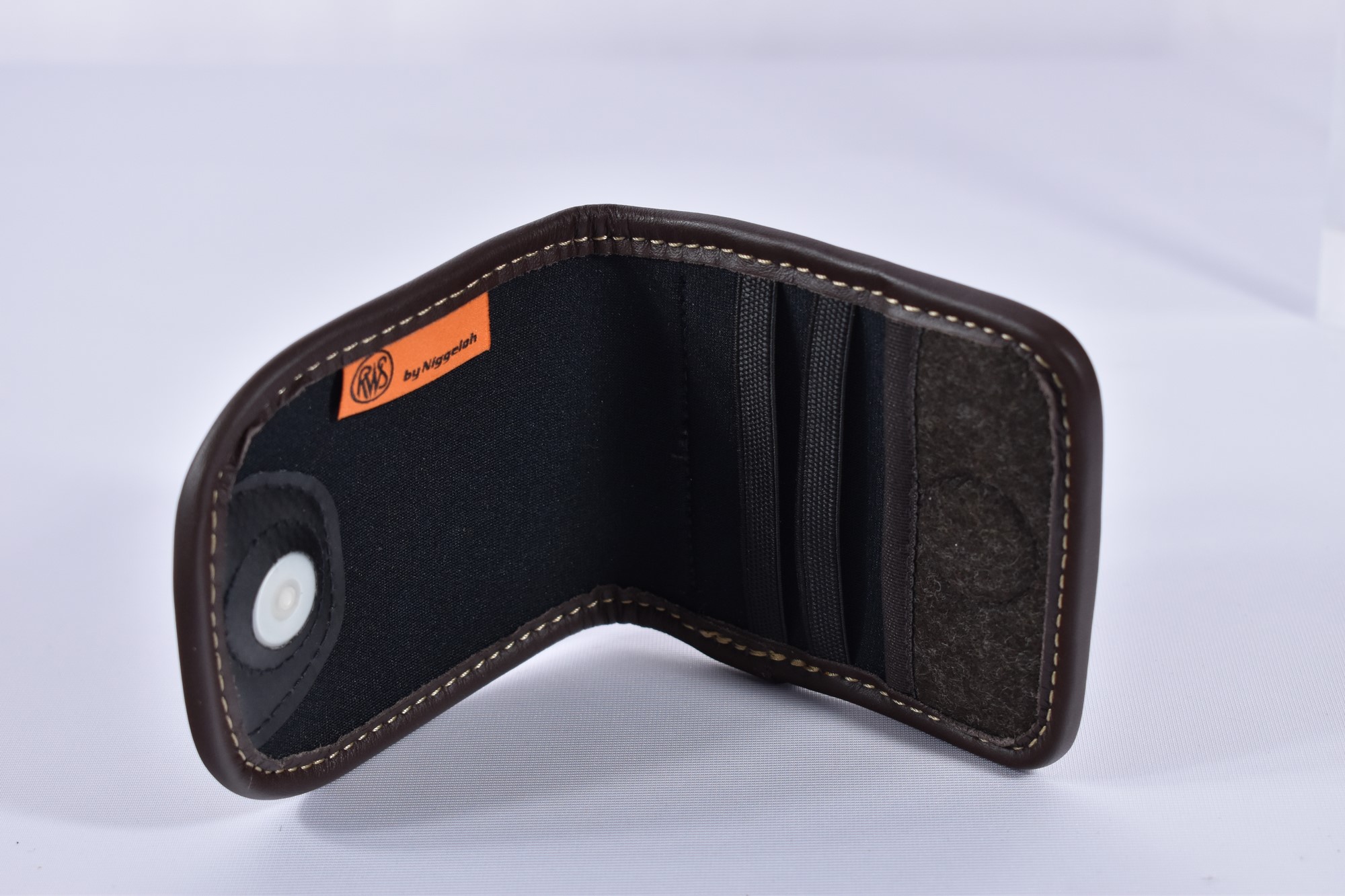 Das Patronenetui von RWS hat eine breite Lederschlaufe auf der Rückseite garantiert an jedem Gürtel einen sicheren Halt.