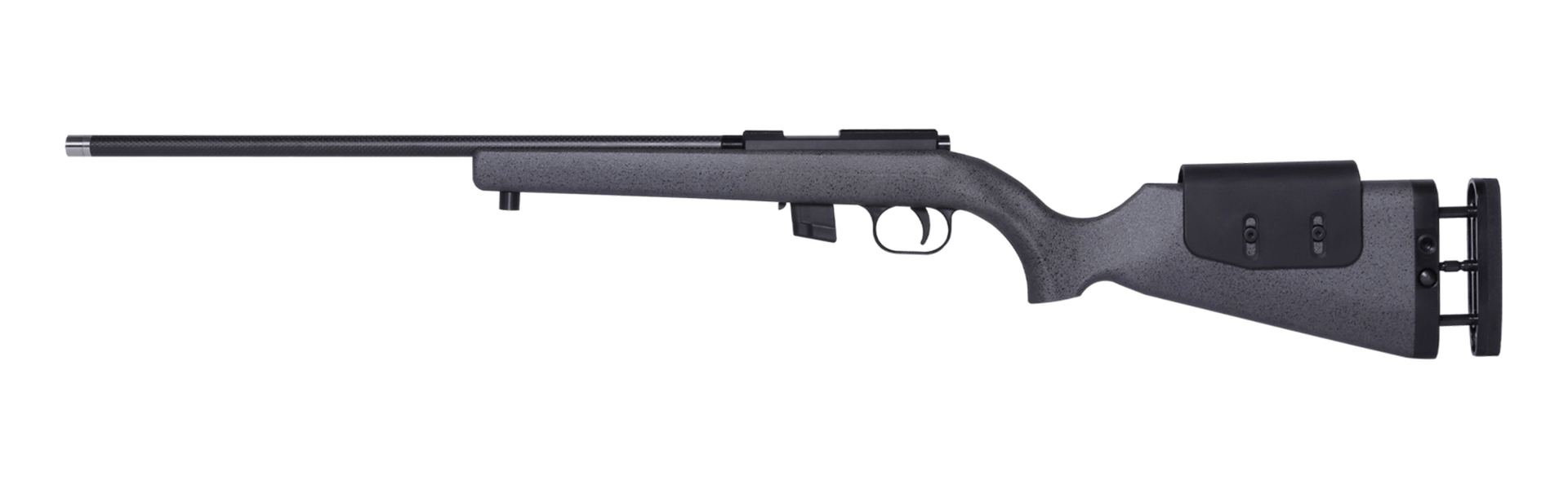 Der karbonfaserverstärkte Polymerschaft der K15A verfügt über eine Sandoberfläche für optimale Griffigkeit. Zudem ist der Schaft verstellbar, einschließlich einer anpassbaren Schaftkappe und Wangenauflage, was die Waffe individuell an den Schützen anpasst. Der Lauf mit einem Durchmesser von 16 mm ist ebenfalls karbonfaserverstärkt und mit einem Mündungsgewinde von 1/2′-20 UNF ausgestattet. Der Druckpunktabzug sorgt für eine präzise Schussabgabe, optional ist auch ein Matchdruckpunktabzug mit Finger-Stop erhältlich.
