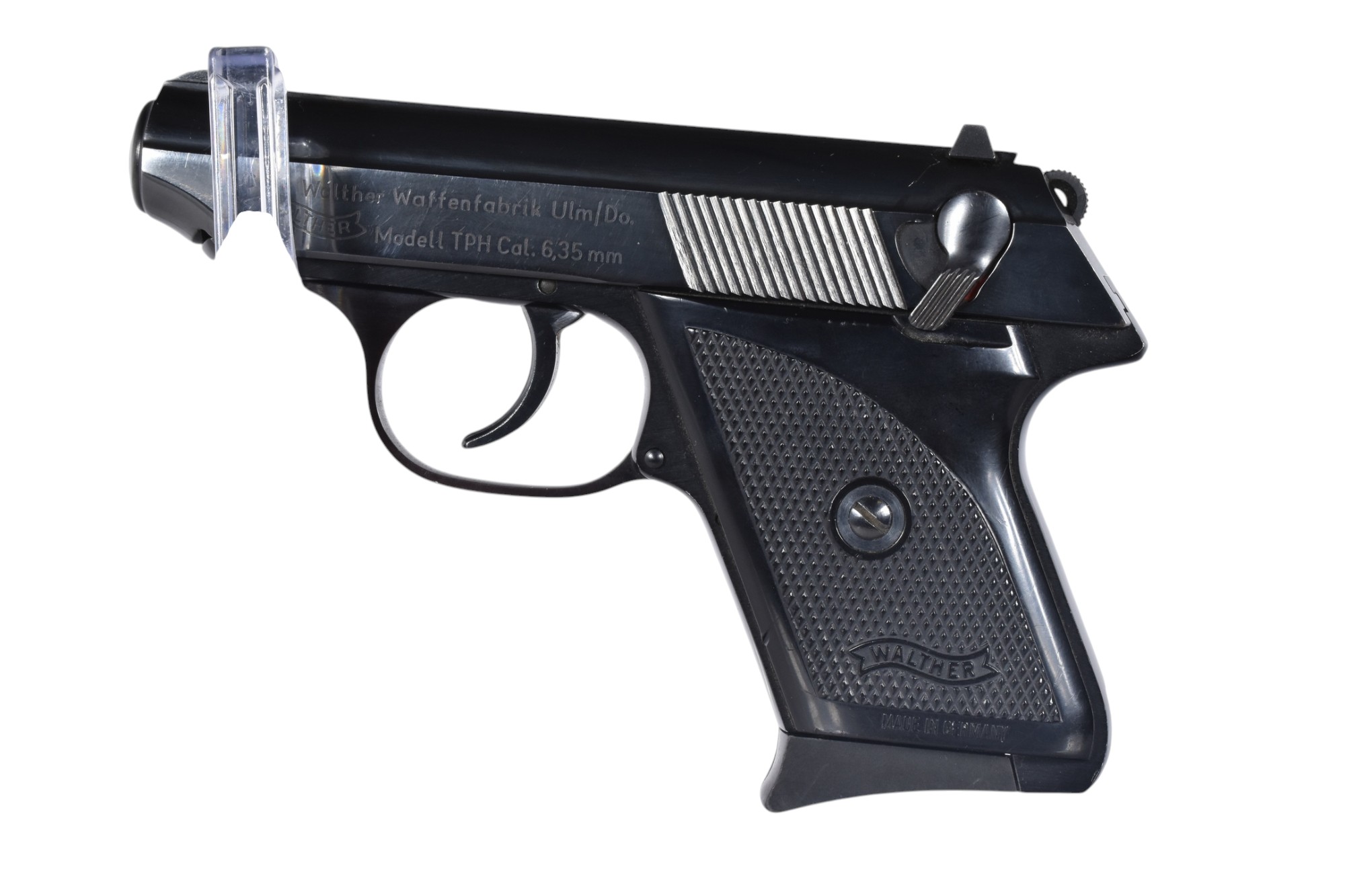 Diese Walther TPH im Kaliber 6,35mm Browning ist eine schlanke und leicht zu führende Taschenpistole. Mit einer Gesamtlänge von 14 cm und einer Lauflänge von 7 cm gehört sie zu den besonders kompakten Selbstladepistolen ihrer Klasse. Die Waffe ist mit Kunststoffgriffschalen ausgestattet und steht für zuverlässige Technik in kleinem Format.