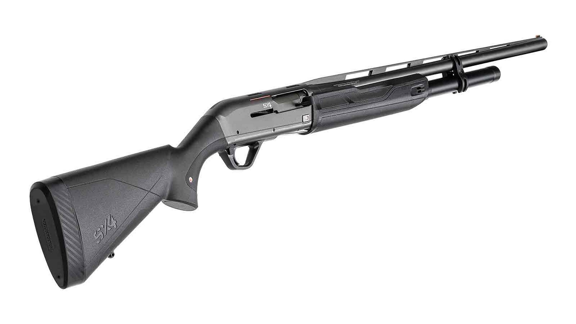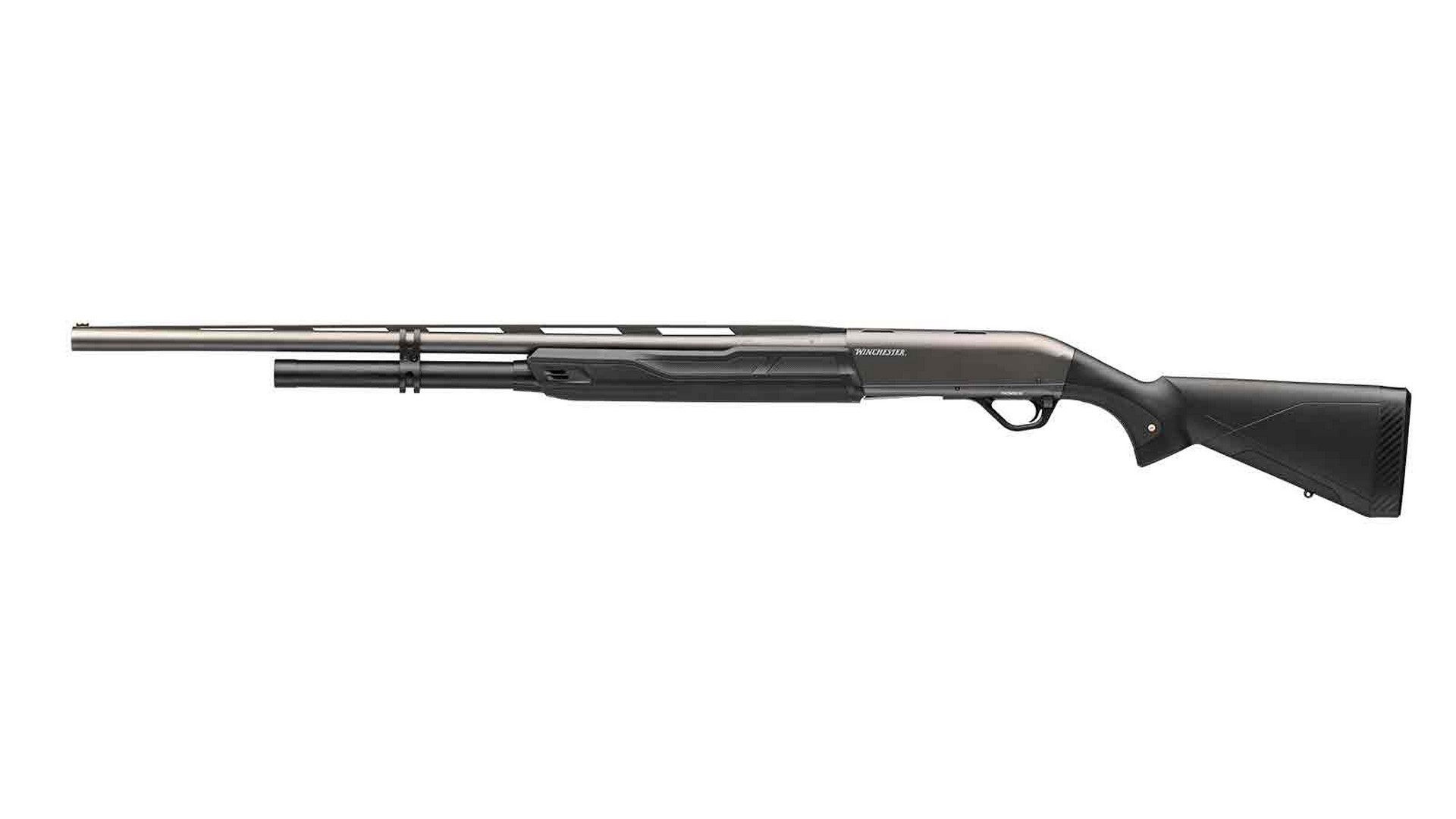 Die graue Farbe von Lauf und Gehäuse kontrastiert hervorragend mit der schwarzen Erweiterung des Magazinrohrs und verleiht der Winchester SX4 9 Rounds Composite ein elegantes und modernes Aussehen